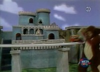 As the Trolley arrives in the Neighborhood of Make-Believe, the castle fountain is not seen. However, just moments later when Mr. McFeely arrives at the castle, the fountain is present.