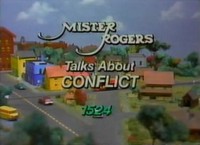 In the Neighborhood of Make-Believe, Lady Elaine and Lady Aberlin take Bob Dog with them to Southwood to find out what exactly is going on. Upon their arrival, they learn that the parts Corney made have been used to build a bridge, not for building bombs. While they are there, Keith, the Southwood carpenter, sings What Do You Do With the Mad That You Feel. King Friday is embarrassed when he learns that there are no bombs in Southwood and declares that his generals are not "generals of peace." Mister Rogers concludes this episode with a few interesting comments about rules: "Rules are very, very important. Not just for games but for all things. Even big things like countries. Countries have to have rules to protect people, too. And someday you'll be helping to make the rules for your country. I trust that you'll make the best kind you know how." NotesThe original broadcast of this series coincided with ABC's airing of the television film The Day After. It is often believed that these episodes were designed to help children cope with potential feelings brought on by the film; however, the timing of the movie and this series was purely coincidental. The Conflict episodes last aired during the week of April 1-5, 1996. The film about marbles was made in association with Marble King in Paden City, WV. This is the same film shown in Episode 1750 from the When Things Get Broken series. The famous clip of Fred Rogers closing the program to discover that the crew has switched his dress shoes for a smaller pair comes from this episode. Appearing In This Episode