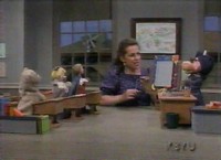 Mr. McFeely stops by with a very heavy present for Mister Rogers that he says is a secret. Before opening it, they watch a videotape of Mr. McFeely’s visit with marble sculptor Allen Dwight which includes Mr. Dwight sculpting a marble block with various tools. After the video, the present is opened to reveal the finished sculpture. Mister Rogers comments that he is thrilled that they would think to give it to him and Mr. McFeely suggests that this has been one of his favorite deliveries. In the Neighborhood of Make-Believe, King Friday announces to Lady Aberlin that he has an invisible announcement -- not only that, but after a fanfare he proclaims his inaudible, invisible announcement. He declares that when he is ready, he will reveal his secret. At the Museum-Go-Round, Lady Elaine whispers her secret to Lady Aberlin: she is getting married to Neighbor Aber. Lady Elaine is reminded of a time she thought she was going to marry Corney and Lady Elaine assures Lady Aberlin that she does not make the same mistake twice. At the school, Harriett Elizabeth Cow is late and the children hide behind their desks to surprise her when she arrives. Lady Aberlin arrives with a new teaching board on which she draws an O with an X inside – “a hug and a kiss together.” When she pulls up the plastic layer on the front, the hug and kiss disappear. Miss Cow explains that it’s not magic but Daniel still wonders where the hug and the kiss went. Lady Aberlin suggests that real hugs and kisses go straight to your heart. She then brings up the topic of weddings which makes Harriett Cow suspicious. Ana mentions that she would like to marry Daniel when she grows up. Back at the Museum, Betty Okonak Templeton is informed of Lady Elaine's secret. Lady Aberlin returns in time to hear Lady Elaine sing a song full of excitement for her pending "marriage." After her song, Lady Elaine shows her balloon ring causing doubt in the mind of Lady Aberlin. Back at the house, Mister Rogers concludes by expressing his gratitude for the marlbe sculpture and that he will write some thank you letters -- with regular ink. NotesThe marble studio in the film is the Vermont Marble Museum. A gallery of Allen Dwight’s work can be found on the Vermont Fine Art Gallery website. When the marble sculpture is revealed, Mister Roger’s can’t resist peeking through the center.