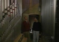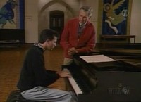 Visiting a nearby church, Mister Rogers introduces Mr. Morrison who is playing the organ. Showing the various parts of the organ, Mr. Morrison plays several pieces demonstrating his wonderous musical talents. He also talks about the special shoes he wears to operate part of the organ and shares some music he might play to express various feelings. Mr. Morrison shares that he will be playing the piano in an upcoming concert. In the Neighborhood of Make-Believe, before leaving for a Food for the World meeting, Queen Sara wonders why Mayor Maggie is wearing a raincoat when it is not raining. She mentions that it is very wet somewhere in the Neighborhood and asks King Friday when he will give up the idea of everyone wearing three-cornered hats. King Friday agrees to do so only when everyone in the Neighborhood has complied -- "Everyone must wear a three cornered one." Neighbor Aber arrives at the castle after having been at the Museum-Go-Round. He mentions that anytime someone says anything about three-cornered hats, Lady Elaine squirts them with her hose. At the tree, X and Henrietta are concerned with the humidity and Neighbor Aber sings to them -- You Are Special. Moving on to the Museum-Go-Round, Neighbor Aber and Betty Okonak Templeton both get a squirt for saying "three-cornered hat." Back at the house, Mister Rogers talks about the importance of talking about feelings rather than "acting silly." NotesYou Are Special plays as the episode transitions to the church. Alan Morrison plays a piece called "Tarantella" by Camille Saint-Saens as well as segments of "Handel's Water Music," "Pageant" by Leo Sowerby, and Charles-Marie Widor's 6th Symphony for Organ. Appearing In This Episode