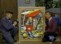 Maggie sings and signs Once a Day before she and Mister Rogers have a talk about what to do when feeling angry. Swimming is what helps Maggie Stewart feel better when she's angry -- even just thinking about swimming. This leads into a short clip of Maggie swimming in a pool. Mister Rogers spends a few moments at his piano talking about how he has always liked to make up songs about what he's feeling and doing. As a demonstration, he comes up with a song about having a peanut butter and jelly sandwich with a glass of milk. Mister Rogers also plays a few more familiar pieces including You Are Special. In the Neighborhood of Make-Believe, Robert Troll draws a very detailed picture of Grandpere's tower which further frustrates Lady Elaine. In dealing with her anger, she uses her boomerang to turn the tower upside down! Back at the house, Mister Rogers receives a visit from Jay Styperk, a wheelchair athlete and student of Marilyn Barnett, who stops by to demonstrate some exercises. Jay also explains to Mister Rogers why he uses a wheelchair. Inside, Mister Rogers reminds viewers that "the important thing to remember is there are many things we can do when we're feeling angry or sad or happy -- many things that don't hurt ourselves or anybody else." Mr. McFeely delivers the completed painting from Red Grooms and sings the Speedy Delivery song. Wrapping up a busy day, Mister Rogers calls Red Grooms to thank him for the painting. NotesDuring the opening sequence, Mister Rogers drops one of his dress shoes as he attempts to toss it to his left hand. Rather than reshoot the scene, Mister Rogers recognizes this as a moment to teach a quick and simple lesson: "Ever drop your shoes when you're putting them on? Well you just pick them right back up again." This series of episodes is often referred to with the abbreviated title "Mad Feelings;" however, the full (lengthy) title is "What Do You Do With the Mad That You Feel?" Appearing In This Episode