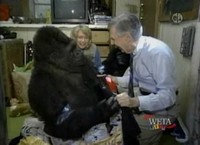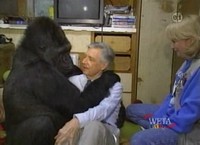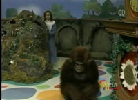 Episode 1727Topic: You and I Together In the Neighborhood of Make-Believe, Prince Tuesday is playing hide and seek with Lady Aberlin when an unexpected guest arrives in the Neighborhood -- a gorilla! As the gorilla goes throughout the Neighborhood, everyone is afraid except for Lady Aberlin. As she welcomes the gorilla, Lady Elaine Fairchilde sounds an alarm notifying everyone of the gorilla's presence. Back at the house, Mr. McFeely brings over a film about how toy balls are made. NotesMister Rogers' visit with Koko was documented in a 1998 issue of Gorilla: The Journal of the Gorilla Foundation. Appearing In This Episode