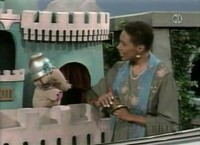 In the Neighborhood of Make-Believe, Mayor Maggie plays the F-sharp bell as King Friday plays the same tone on his bass violin. While King Friday plays along, Mayor Maggie sings I Think I'm Going to Like Today. Meanwhile, H.J. Elephant is wearing a hat shaped like a bell.
