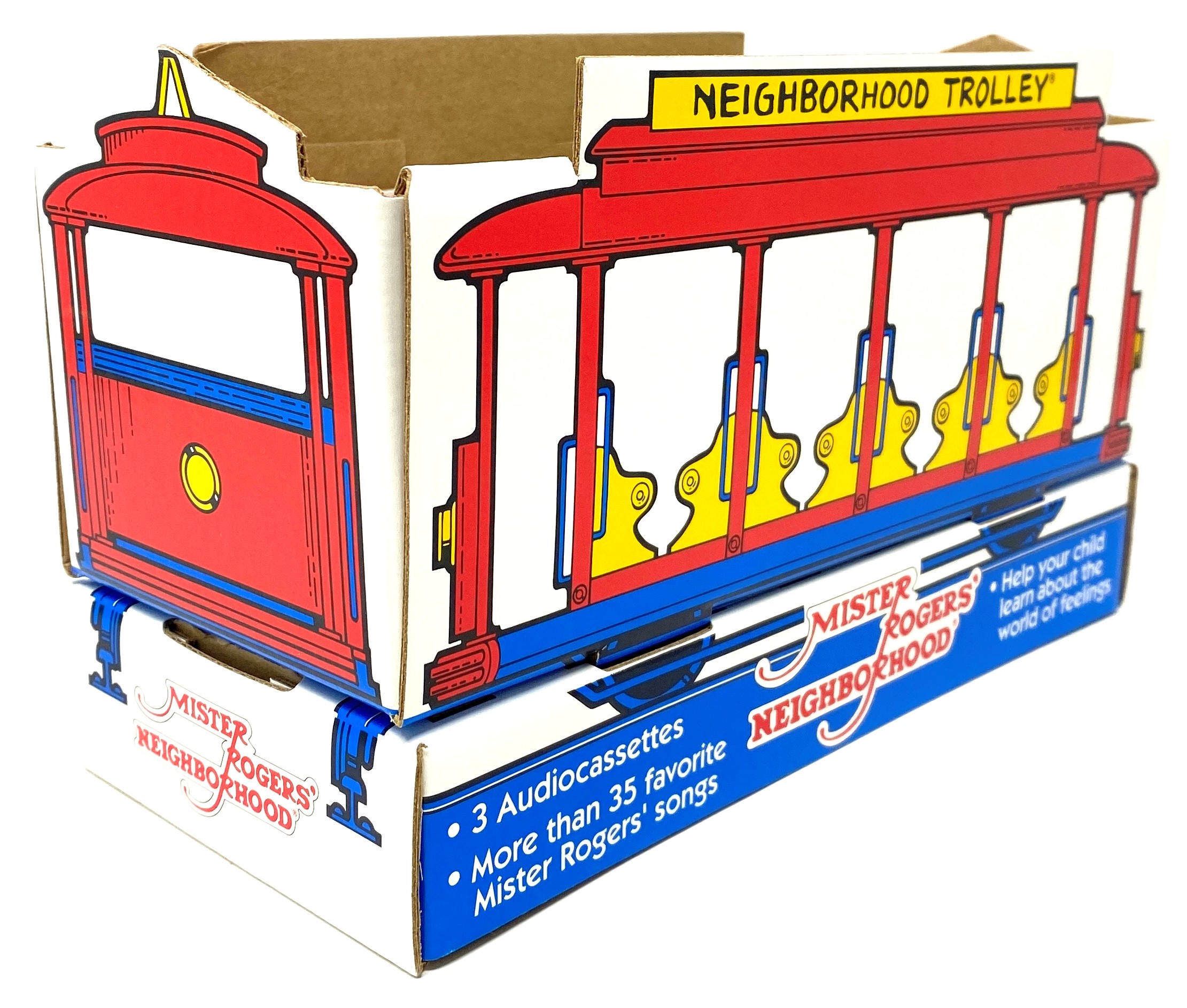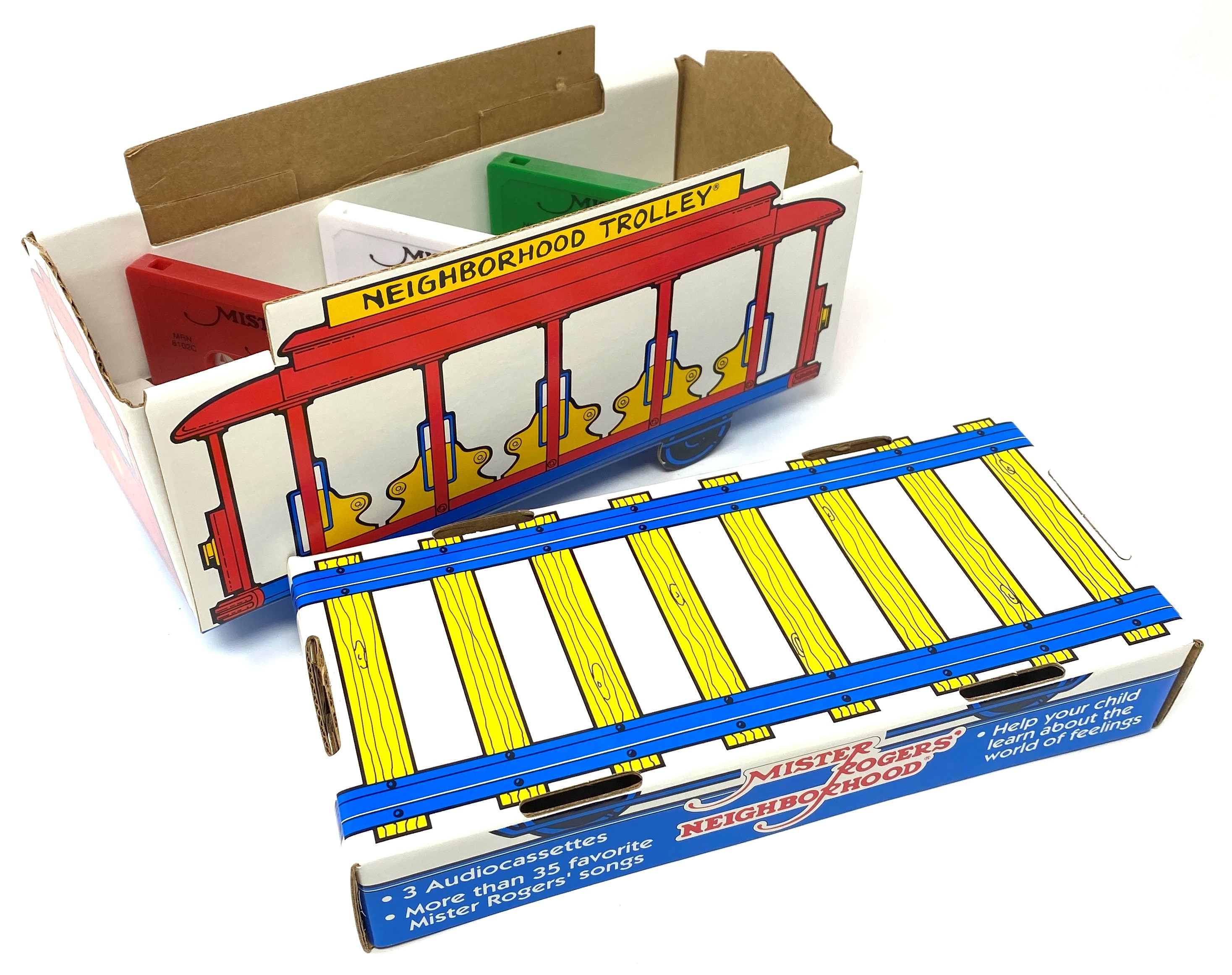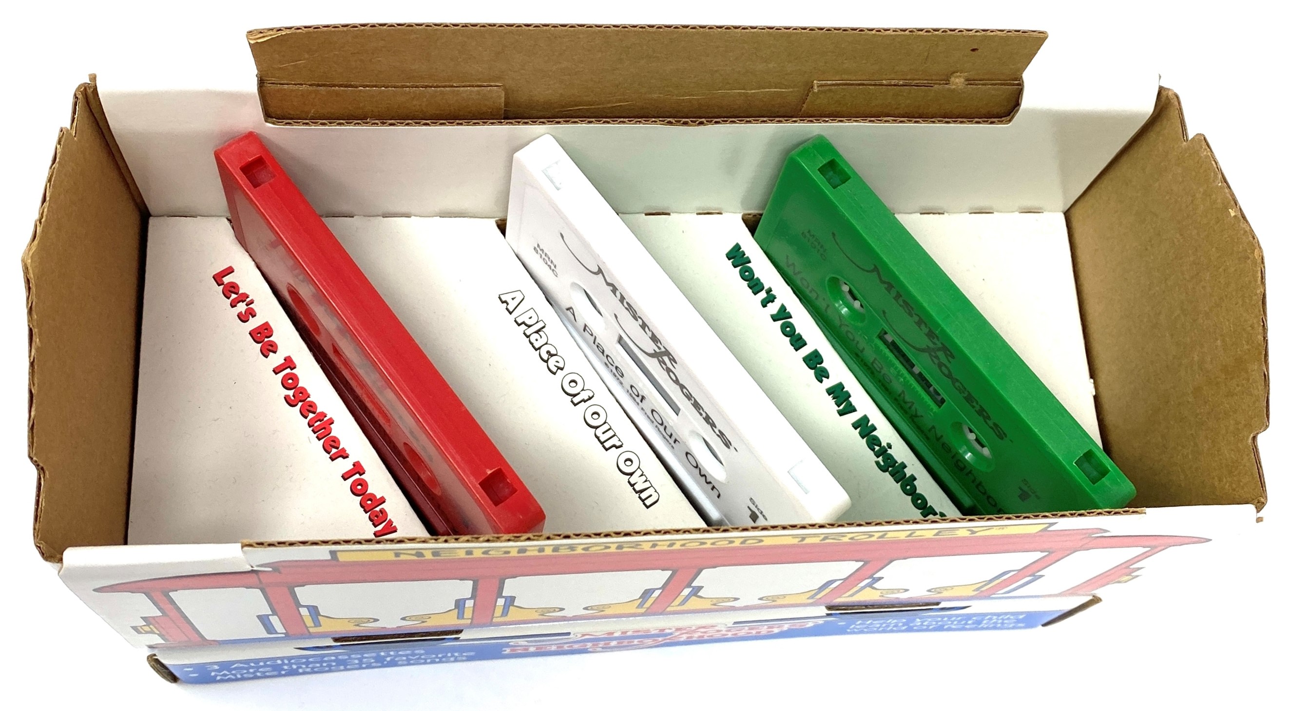 DescriptionThe cardboard Trolley has an open top to remove the three cassette tapes included in this set -- Let's Be Together Today, A Place of Our Own, and Won't You Be My Neighbor?