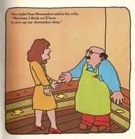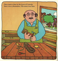 The elves come in at night while Sam and his wife sleep and make a pair of shoes which quickly sells the next day. This allows Sam and his wife to buy more supplies. The elves return and make more shoes and Sam invites them to stay. His business is saved. NotesThe story in this book is played out in a marionette performance at Brown's Marionette Theater in Episode 1350 of Mister Rogers' Neighborhood. A Note From Fred RogersDear Friends, A child who sets the table or does other simple kinds of family work can get a sense of being a contributor to the family's well-being -- and rightly deserves this sense. The elves in this story have always represented to me "children who want to be helpful to their parents." There's a joyful fantasy in growing children that they could do somethingso helpful -- so useful -- that their parents would really be proud of them and genuinely served by their efforts. Children have longings not only to be able to help their parents but sometimes surpass them as well. Their ultimate solution to this very healthy desire implies the responsibility and competence of adulthood. So -- this is a story the roots of which touch the real desire to have something of value to offer -- and the eventual inclusion in the family's work of those who want to be so helpfu. It is a story about the worth of the little and the young. Sincerely yours, |
