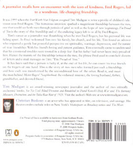 Tim's career as a journalist was flourishing when he met Fred Rogers, but his personal life was a shambles. As Rogers welcomed Tim into his family, his church, and his life, Tim found an advisor who imparted a gentle but powerful perspective on spirituality, marriage, depression, and the nature of true friendship. With his friend's loving and patient guidance, Tim eventually came to understand that his emotional troubles were rooted in a deep fear that his father had never truly been proud of him. Hence the mantra of the friendship between the two, the phrase Rogers used to conclude dozens of letters and e-mail messages to Tim: "I'm Proud of You." Tim's friendship with Rogers helped him to mend his relationship with his father and become a better husband and father himself, all the while marveling at how many simple pleasures he had overlooked throughout his life. It has been said that a person is lucky if, at the end of his life, he can count his true friends on the fingers of one hand. This is the story of two men who formed just such a friendship, and how each was transformed by the unconditional love of the other. Read it, and meet the man behind Mister Rogers' Neighborhood: the ordained minister, the loving husband, father, grandfather, and devoted friend. NotesAfter appearing on Episode 010 of the Neighborhood Archive Podcast, author Tim Madigan was kind enough to share a copy of the letter he received from Fred Rogers -- the letter that inspired this book. Click the images below for a larger view. |