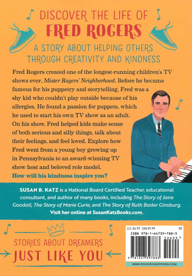 SummaryDiscover the life of Fred Rogers―a story about helping others through creativity and kindness Fred Rogers created one of the longest-running children’s TV shows ever, Mister Rogers’ Neighborhood. Before he became famous for his puppetry and storytelling, Fred was a shy kid who couldn’t play outside because of his allergies. He found a passion for puppets, which he used to start his own TV show as an adult. On his show, Fred helped kids make sense of both serious and silly things, talk about their feelings, and feel loved. Explore how Fred Rogers went from a young boy growing up in Pennsylvania to an award-winning TV show host and beloved role model. |