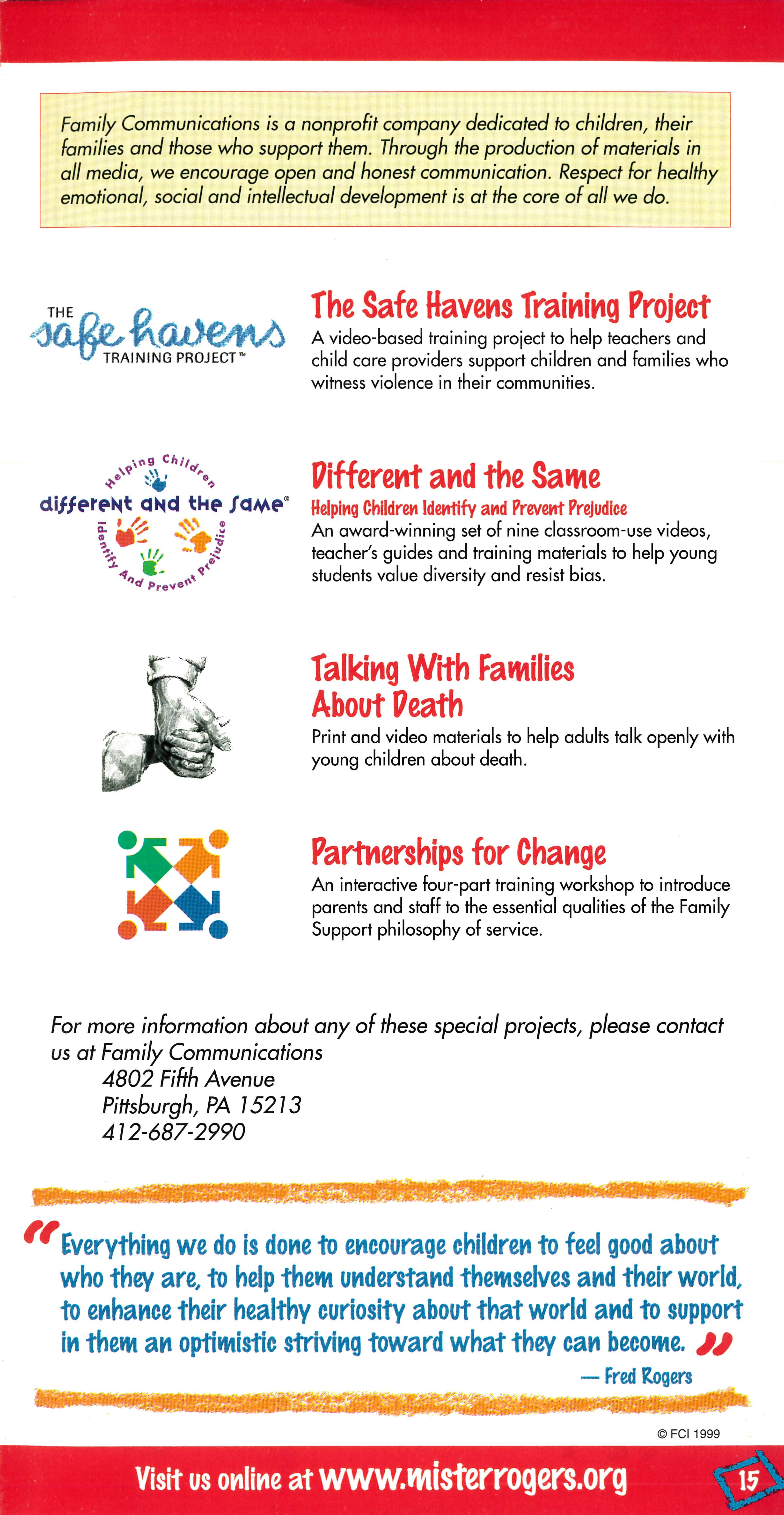 Do not duplicate or distribute any material from this site without the consent of The Fred Rogers Company.