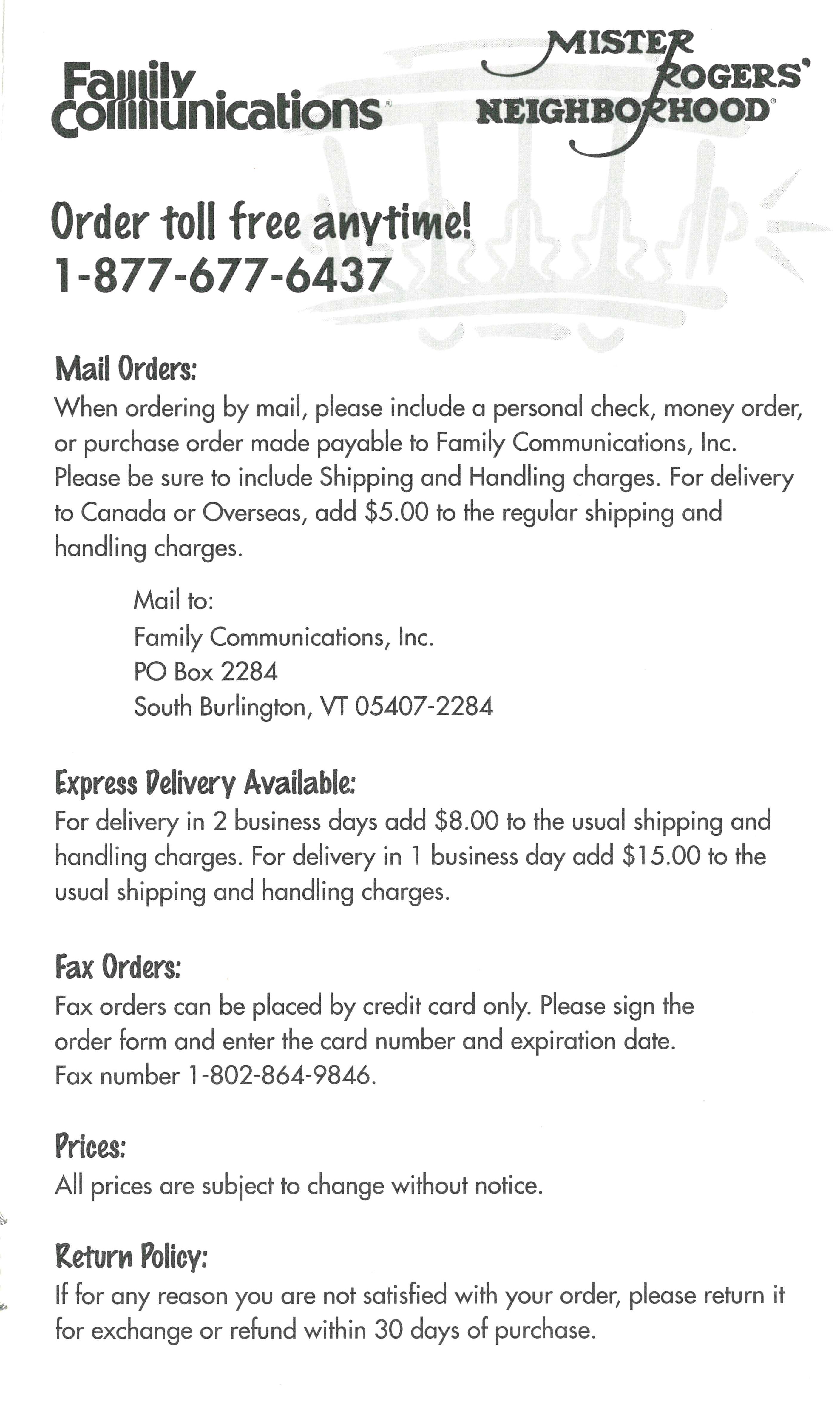 Family Communications Order Forms & CatalogsDate: 1983 [Click images for larger view] Date: 1999 [Click images for larger view] |