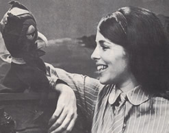 Misterogers also tells us others things we might wonder about -- how to weave cloth, and how to make candles. Did you know that Benjamin Franklin made candles? Misterogers knows. He winds rope wicks on a candle frame, just as young Ben did long ago, and then dips them into melted tallow until the candles grow long and round and fat. After that, Picture-Picture-on-the-Wall shows us a movie about modern candle-making. Sometimes Misterogers' neighbors drop by. Once in a while one of the ladies in the Neighborhood, Mrs. Rubin, brings handicrafts that her friends have made; the latest were wigs made from wool and newspapers. World-renowned pianist Van Cliburn has visited Misterogers, and so has opera singer John Reardon. Shakespearean actors and actresses, and dancers from India, come by too. Sometime during every program we visit the Neighborhood of Make-Believe. Misterogers brings out his telescope, makes himself comfortable on