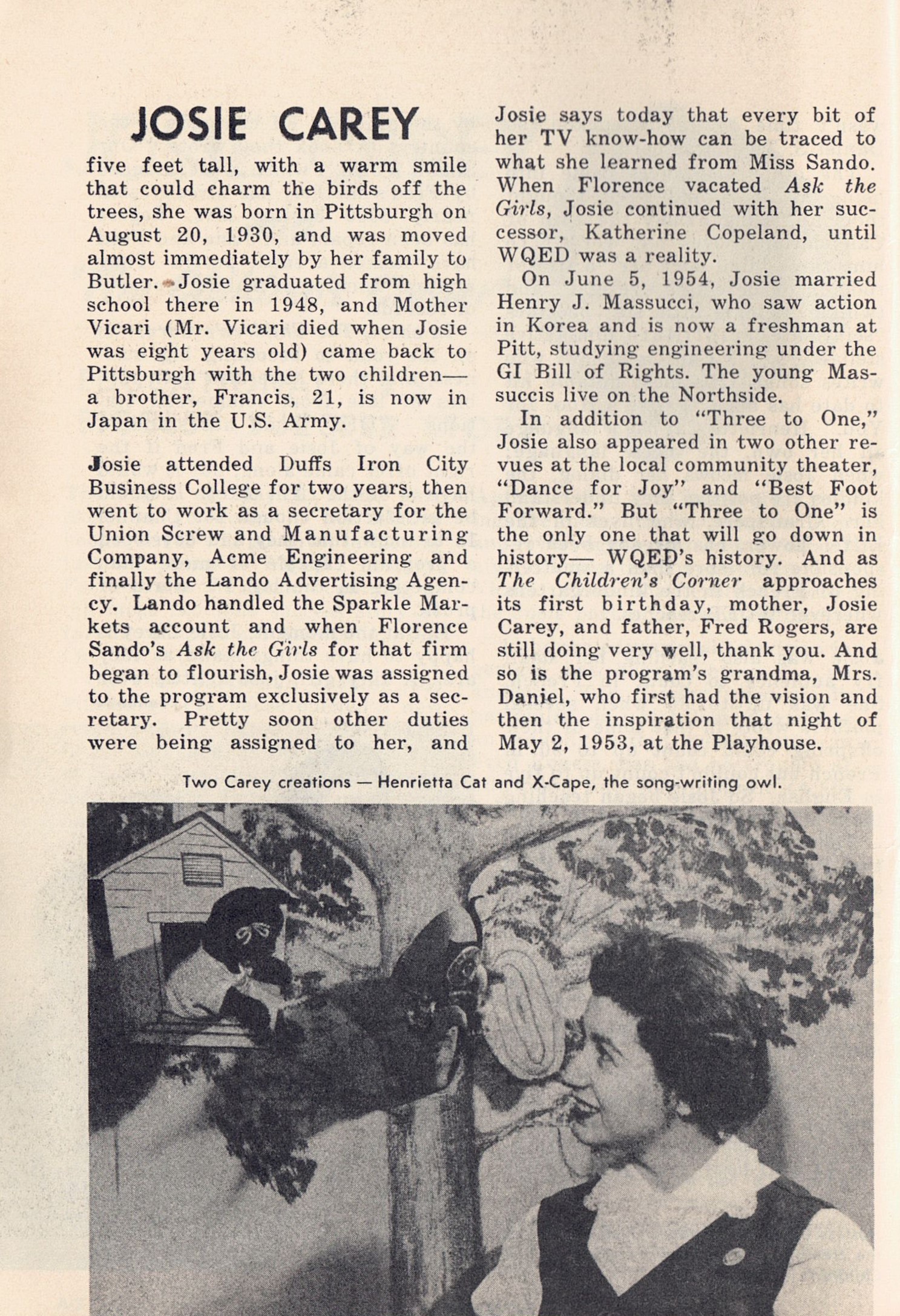 TV GuideTitle: Josie Carey and the Children's Corner: Educational TV's Biggest Success Story