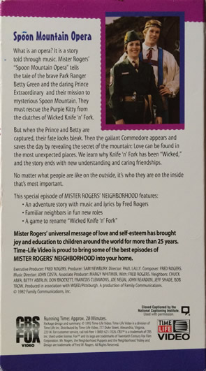 What is an opera? It is a story told through music. Mister Rogers' "Spoon Mountain Opera" tells the tale of the brave Park Ranger Betty Green and the daring Prince Extraordinary and their mission to mysterious Spoon Mountain. They must rescue the Purple Kitty from the clutches of Wicked Knife 'n' Fork.